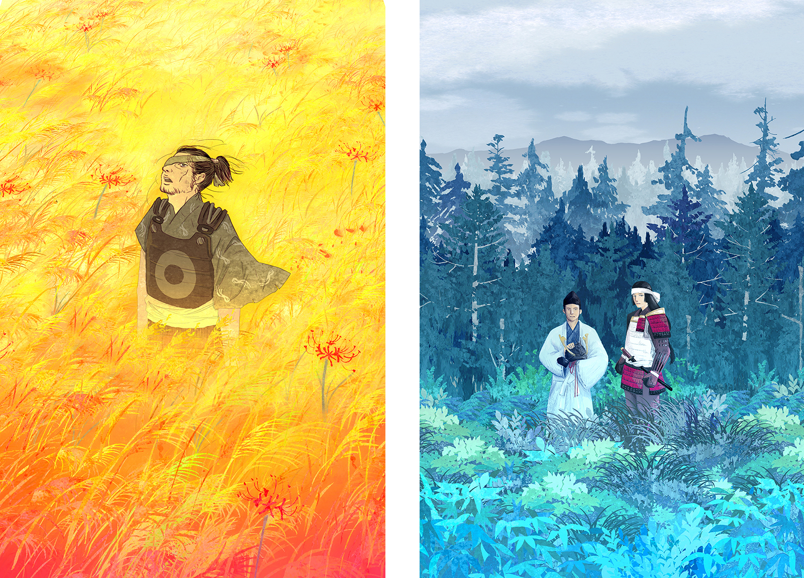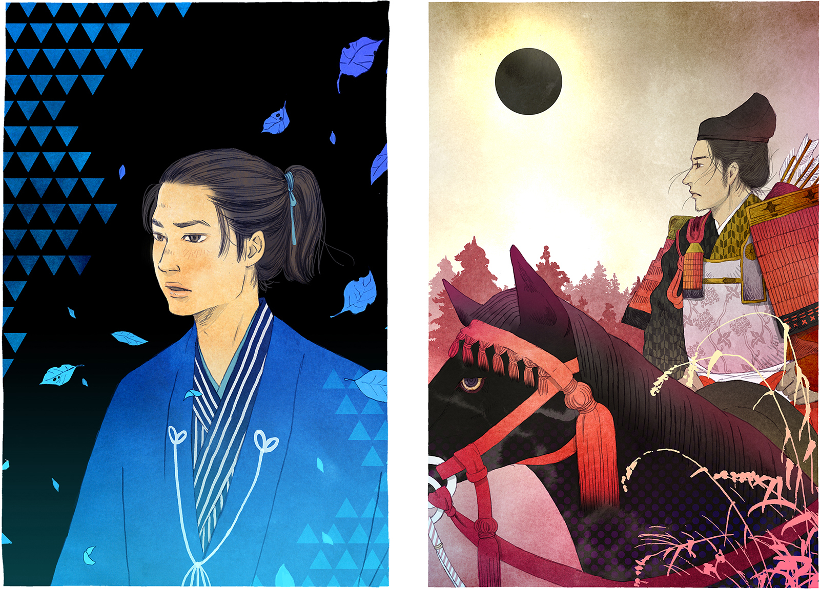 『猛き朝日』のウェブ連載時の挿絵と単行本装画を担当しました。挿絵はモノクロームで単行本にも収録されています。