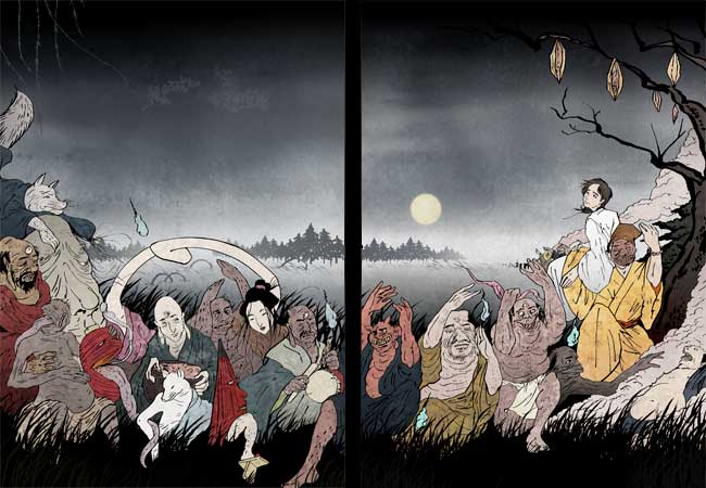 『そは誰か 尋ねし童の 傍らに 百鬼夜行と 暁の影』